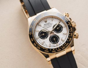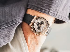 Whatever execution you prefer aesthetically, the size of the case and the paired Oysterflex bracelet provide an excellent wrist feel. On top of that, you get the ever-recognizable Daytona look. It features the prominent screwed pushers and a visual bonus with the opulent yet subtle dial.