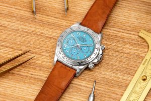 The headline lot at Sotheby’s recently concluded Hong Kong replica watches UK auction, the unique Rolex “Zenith” Daytona with a platinum case and a turquoise mineral-stone dial – and not a blue lacquer “Stella” as originally believed – just sold for HK$24.375 million, or about US$3.14 million, fees included.