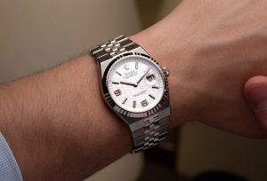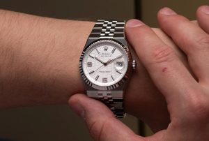Just as important as the case is the bracelet, especially in integrated bracelet replica Rolex watches for men. For the Land-Dweller, Rolex chose to modify its legendary Jubilee style, flattening its top surfaces to better match the 1970s aesthetic of the angular case. The rich brushing on the outer links matches that of the case, while the mid-links are as shiny as they get, sure to be noticed from across the room – so, the usual Rolex way.